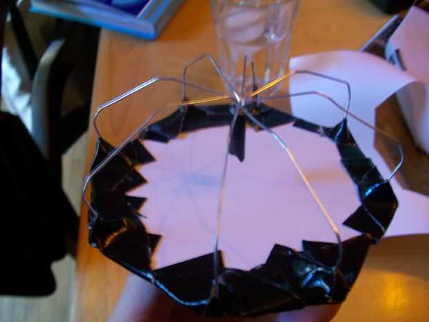 ahora, necesita tomar el extremo más pequeño de sus clips y con cinta adhesiva todos juntos, por lo que puede propagar las puntas hacia fuera para tocar las esquinas de su cartón octagon.tape allí.