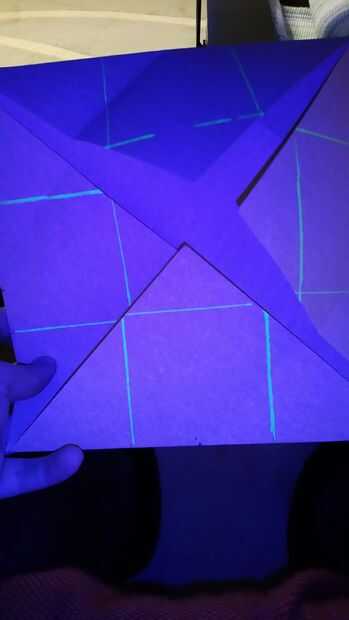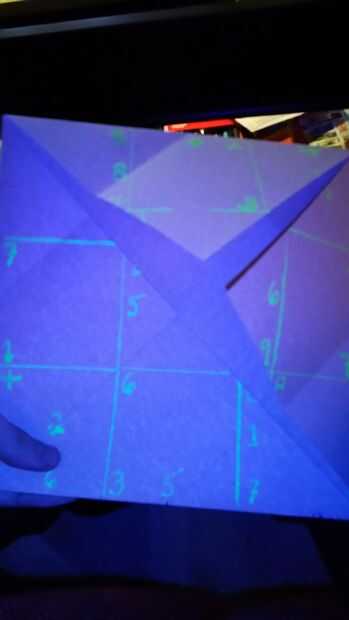 - Utilice el marcador de tinta invisible que hecho y establecer las divisiones principales entre los bloques. Si lo haces bien, las esquinas de los bloques deben estar alineados con los bordes del papel.