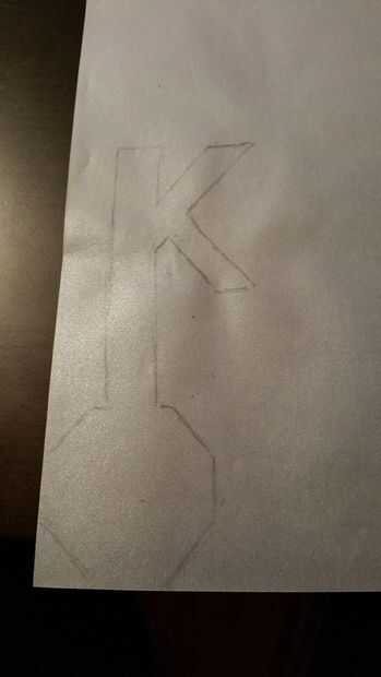 2. Delinear la forma de la tecla con el lápiz sobre el papel vitela. (Yo escogí hacer los dientes de la llave "K" porque esa era la inicial del destinatario de la carta. La base debe ser lo suficientemente grande como para rodear el espacio en blanco de la Plaza de Sudoku).