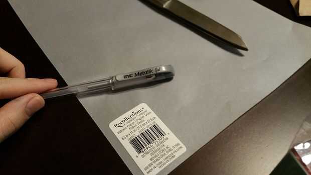 1. Compruebe para ver que lado del papel vitela es más fácil escribir, esta vez con la pluma de gel de plata.