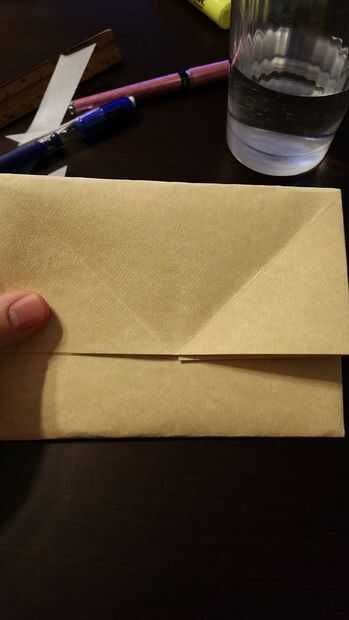 Cierre la carta y doblar en tres partes, por lo que cabe en la envolvente. Elegí tener cierta superposición por lo que pude poner el sello de cera cerca de la mitad.