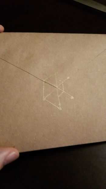 - Doble a lo largo de los pliegues diagonales por lo que la forma de la clave (que tiene las letras como los dientes) se adapta bien y negro ilumina.