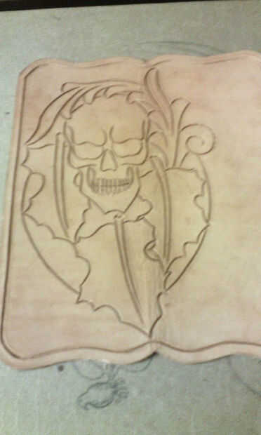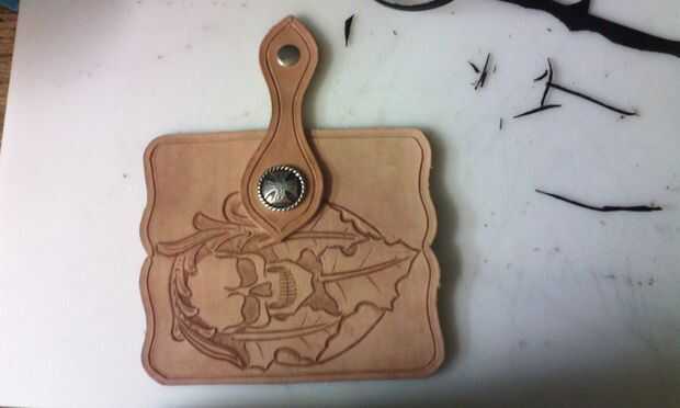 Ahora que tienes tu cuero acanalado para la costura, puede dibujar un patrón para tallar en el cuero o un patrón de la estampilla. Trazado alrededor de la cartera en un fresco pedazo de papel para usar como guía para las dimensiones de mi talla. Dibujar un patrón que sea agradable a usted, después de que se ha acercado algo como traza al dibujo en un pedazo de la película de la localización. Ahora que tienes que hacer caso tu piel con una esponja y agua, utilizar cinta transparente el cuero en un pedazo de cartón y cinta el trazo de su sobre el cuero entubado, utilice un lápiz para trazar en el cuero, espere hasta que la piel comienza a regresar a su color natural, entonces usted puede tallar el dibujo con una cuchilla giratoria.