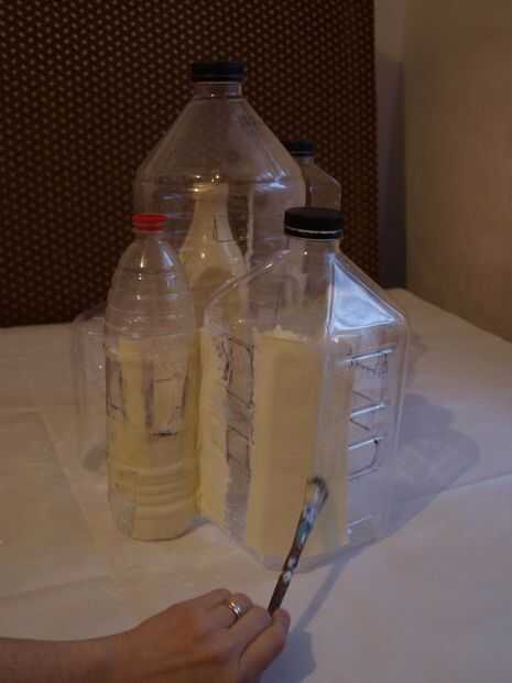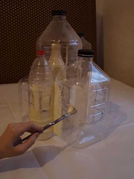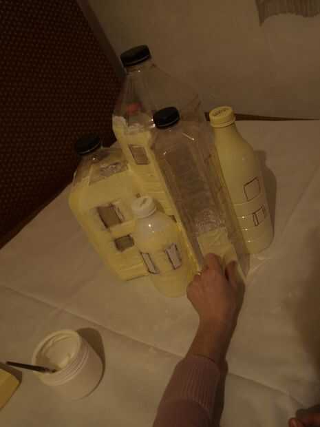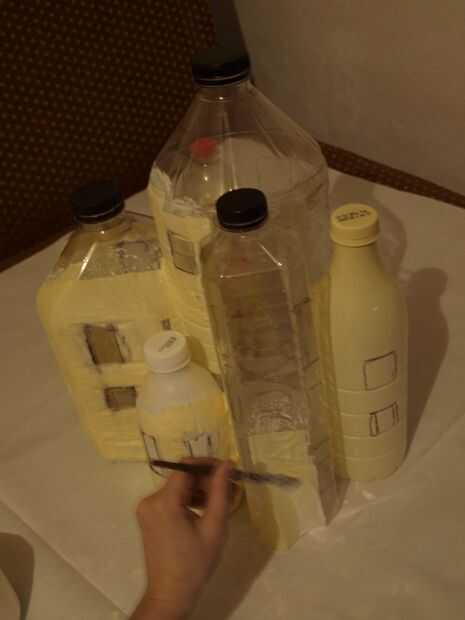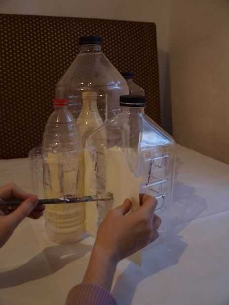 En este paso aplicarán una capa de pegamento para madera y toallas de papel por toda la superficie de su casa, excepto las ventanas y la parte superior de la casa, donde es el techo. Utilizamos el pegamento para madera que va transparente cuando se seca, pero puede utilizar cualquier pegamento para madera. Deje que se seque durante la noche