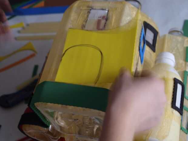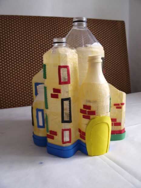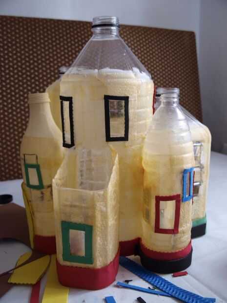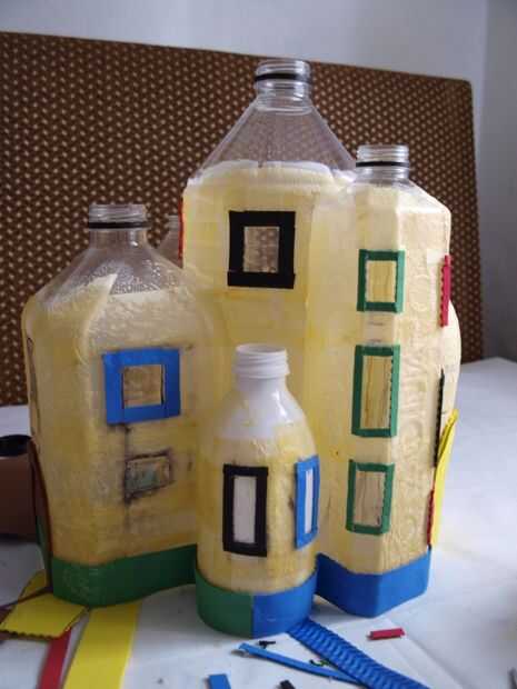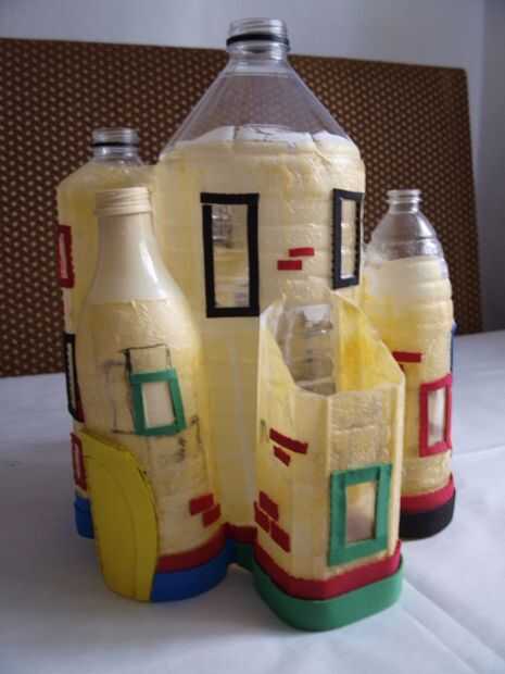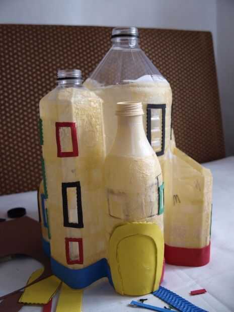 En este paso utilizamos espuma caliente de pegamento y artesanal para la fabricación de puertas, ventanas y otros adornos pequeños como ladrillos o un pequeño borde en la parte inferior de la casa. La frontera puede ayudar a ocultar los fondos de las botellas de plástico y hará que su casa parece más agradable. Después de este paso su casa comenzando a mirar más como una casa y menos como algunas botellas de plástico.