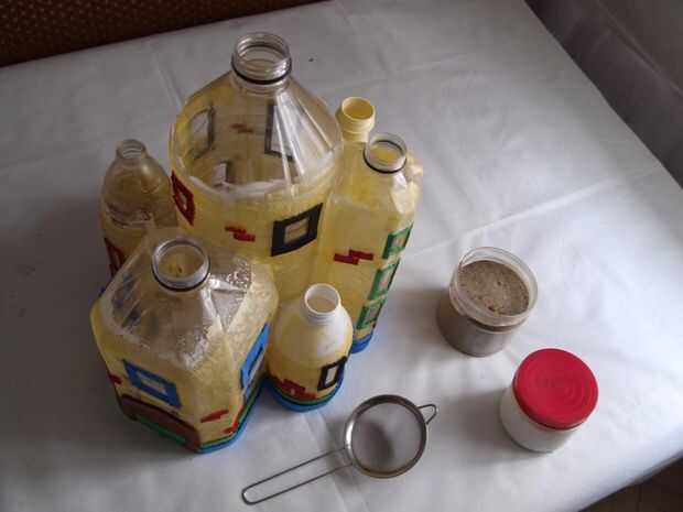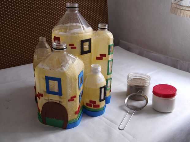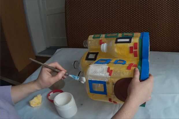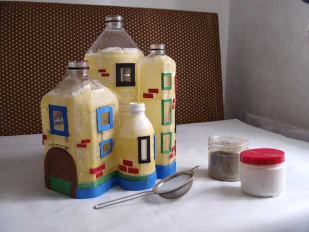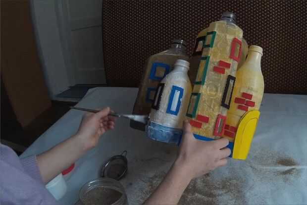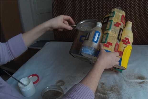 En este paso utilizamos arena y pegamento de madera. Extiende el pegamento sobre la superficie de su casa y echar arena sobre el pegamento mojado. También puede utilizar un colador de té para filtrar la arena en el pegamento mojado. Trabajar áreas pequeñas para que el pegamento no se seque. Deje que se seque durante la noche.