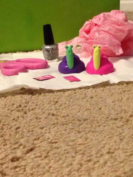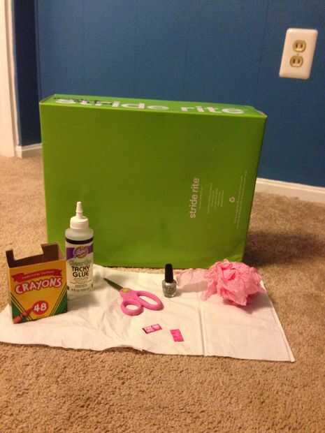 Todo lo que necesitas haz: una caja de tiza vacía, claro pegajoso pegamento, esmalte de uñas, tijeras, gomas de caracol, papel y fotos de su elección.