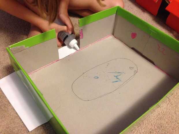 Corte papel tejido para adaptarse a la parte inferior de la casa del caracol. Dibujar lo que quieras en la alfombra (dibujó una alfombra con la palabra, "Miau" en él). Pegar la alfombra abajo... pero ten cuidado. En primer lugar, establecer algunos desechos de cartón para proteger su espacio de trabajo. A continuación, aplique una gota de pegamento a lo largo de todo el perímetro de la caja (especialmente a lo largo de la puerta). A continuación, poner un pequeño toque de pegamento en medio del salón. Por último, colocar la alfombra y presione el papel en el pegamento.