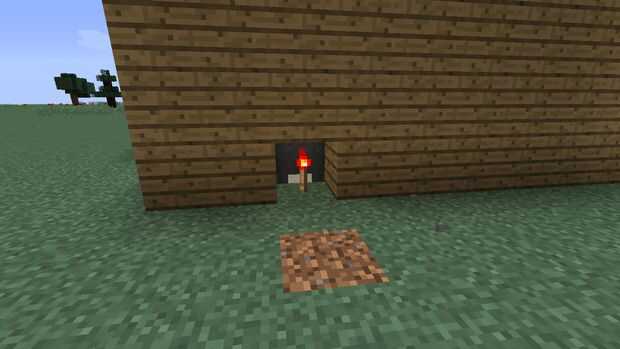 Pasos 3 y 4: la antorcha de Redstone con piedra para parecer una roca fuera de la cubierta