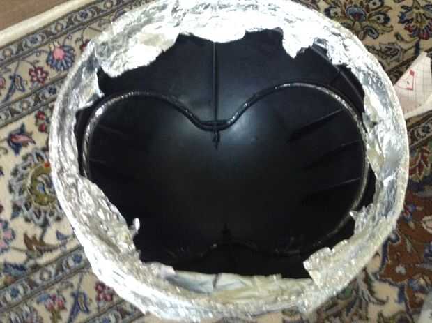 Tomar la parte superior de su bote de basura y el exterior de la cinta. Luego cubrirlo con el papel aluminio. Asegúrese de que usted no puede ver el thrash, todo lo que puede ver es la lámina.