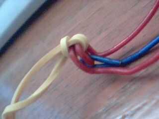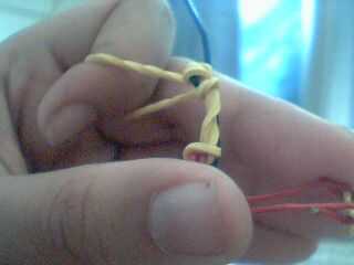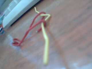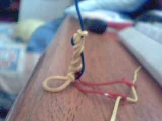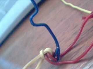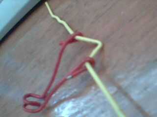 Tome la parte del gancho y del ojo (azul clip de papel) y doblar en el otro ojo (rojo). Ver imágenes 3 y 4.