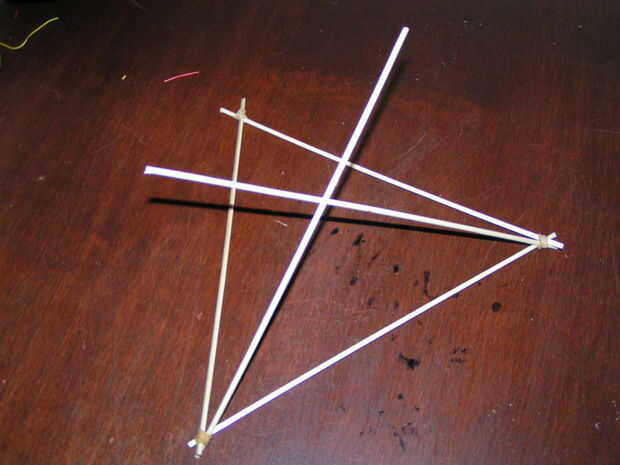 Utilizar tres de los pinchos para hacer un triángulo. Lash las articulaciones junto con bandas elásticas.