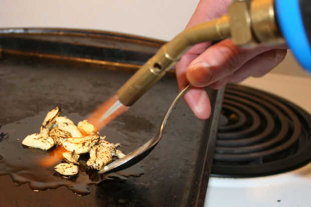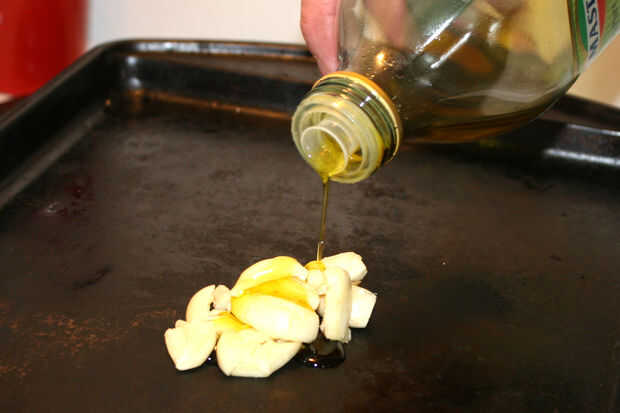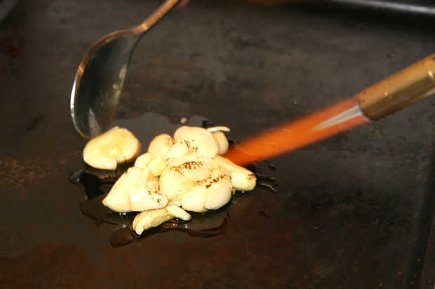 Conseguir el ajo en la sartén y rociar con aceite de oliva. Puesta en marcha de la antorcha nuevamente y cocinar. Las quemaduras son normales, solo intentar cocinar todo uniformemente. Usé una cuchara para mover todo cuando esté cocinando. Cuando es todo hacia lo un plato.