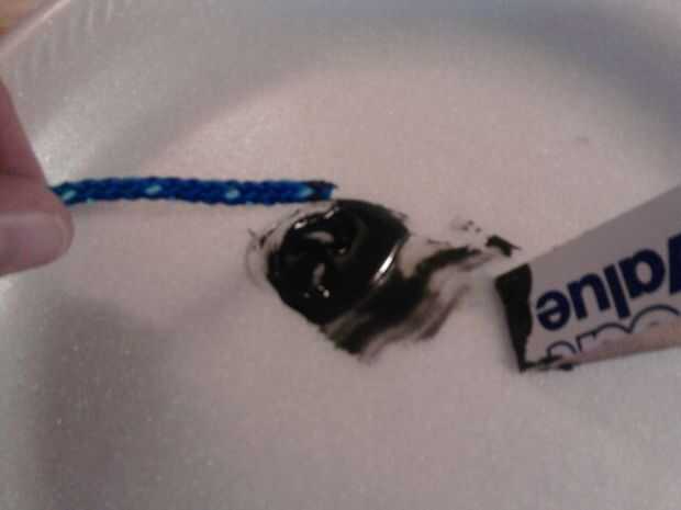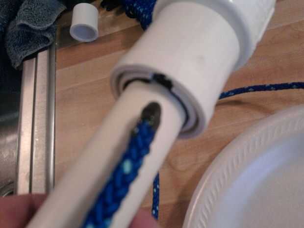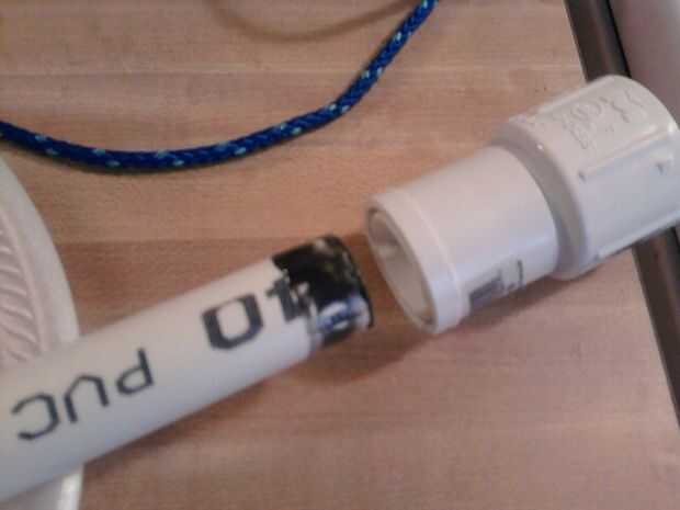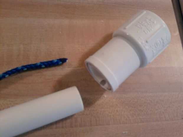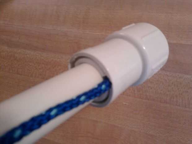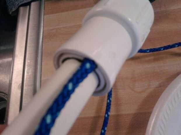 Pegue el buje en el tubo de PVC de 1/2". Luego pegar la cuerda (si son envolviéndolo) en la ranura que usted ha hecho.