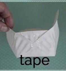 Obtener las esquinas y cinta los pedacitos de la parte inferior para formar una superficie plana para que la cesta se encuentra.
