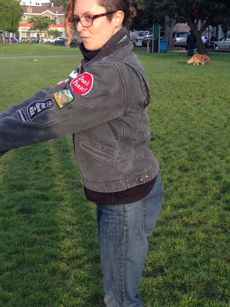 Aquí estoy demostrando cómo la chaqueta ahora se ajusta mejor a la cintura. Yo pude han hecho más estrictos, pero paseo en mi moto/bici en él y no a ser vinculantes.