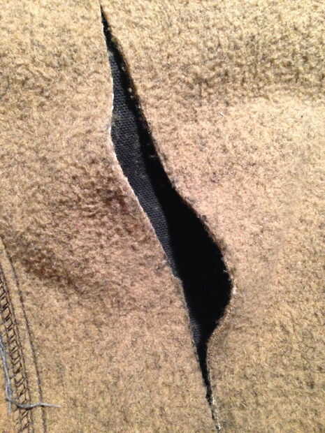 Pellizque la guarnición del material externo y darle un recorte. Si pones tu mano en la parte exterior de la chaqueta, usted puede sentir donde deberás coser y cortarlo en consecuencia.