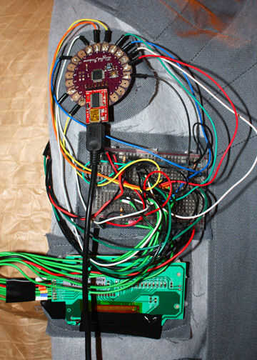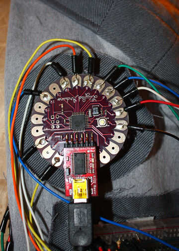 1. una vez que todo está funcionando, el botón de la soldadura y los cables del sensor de la fuerza a los pins de entrada en el lilypad