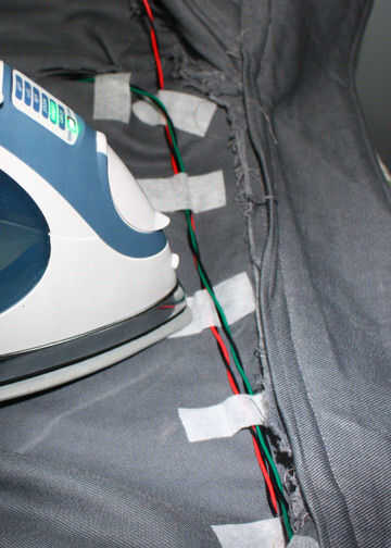 4. Pase los cables alrededor de la chaqueta y las tiras de entretela de hierro sobre el alambre para crear una pista para que puedan permanecer en el lugar.
