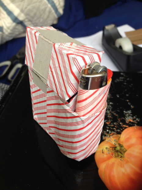 Tan simple como suena. Cinta de los lados. Usted puede conseguir realmente loca tratando de asegurarse de que toda la línea de las líneas o patrones para arriba pero al final, su apenas perceptible porque el producto final es fresco de todos modos. También es mejor para cubrir tanto como sea posible con la cinta porque el la última pieza de cinta que va en el lado ancho no es tan amplia como la caja entera.