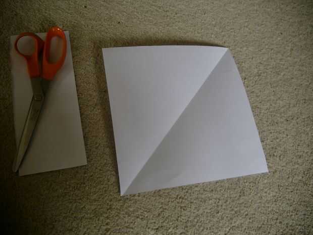 3) desplegar. El pliegue será muy útil más adelante. No son necesarias las tijeras y la losa de papel a cortar.