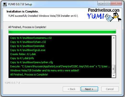 Ahora tienes un capaz de arrancar Windows Vista/7/8 instalador USB Thumb Drive