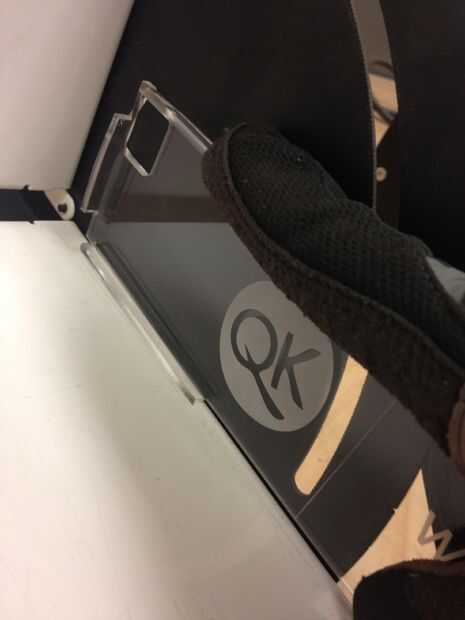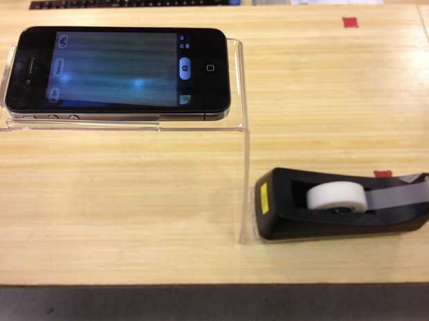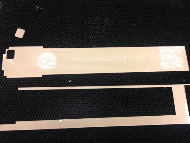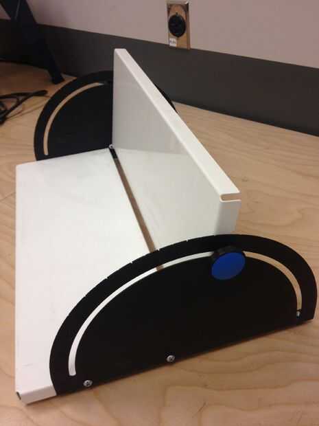 Diseñé un stand de corte por láser para el iPhone 4/4S/5 que tiene el teléfono a la altura óptima de la exploración de 9 pulgadas y deja espacio por debajo de algún tipo de flujo de trabajo (lado al etc. de pila a pila, lado) cuando necesita analizar un gran número de cuestionarios a la vez. Lo hice en TechShop con el Epilog 60 vatios cortador/grabador del Laser y la dobladora de tira Formech FLB500 calor.