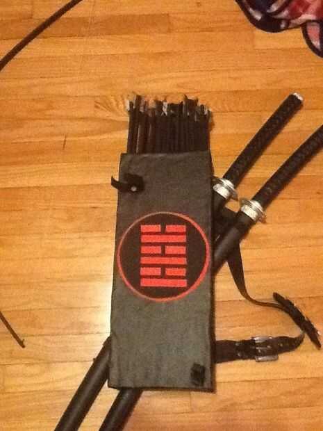 Coloque una cubierta de cartón y marca donde van dos correas de velcro... llevará a cabo el arco en su lugar. Cubrir todo el caso con el cuero del faux. uso la espuma de rojo para hacer la insignia del clan arashikage.