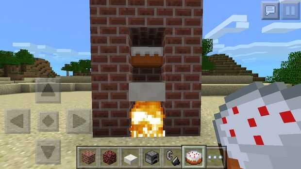 Así que cavar un agujero profundo de un ladrillo en el suelo y poner netherack en el agujero. Le prendieron fuego. Construir una zona de pequeños ladrillos alrededor de él. Poner una losa sobre el fuego. Poner la torta en!