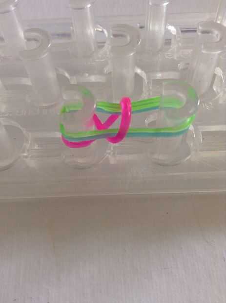 Paso 1: Paso 1 materiales Para esta pulsera necesitarás el kit de telar una cosa de puta (como yo lo llamo: 3) y bandas de goma ~ oh y paciencia...Paso 2: Paso 2 - 8 se Agarra una goma y gire por lo que parece un 8!Paso 3: Paso 3-colocar en el telar