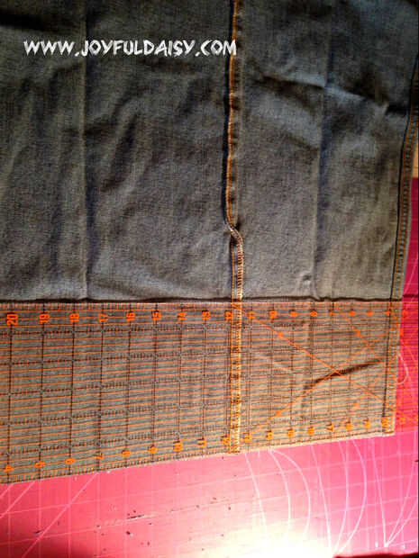 2. Corte las piernas de jean abierta por una costura y recortar los bordes inferiores rectos.