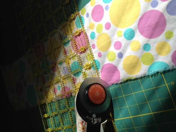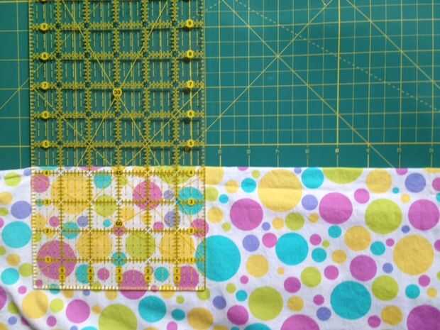 Medida sobre una estera de corte rotativo y con una regla de borde recto, cortar la tela en tiras de 4 1/4" usando el cortador rotatorio.