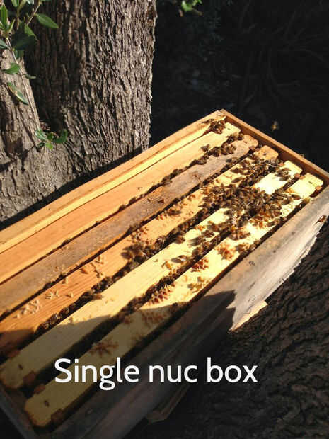 Un solo nuc o 5 marco caja de nuc, es similar a una Asamblea de colmena tamaño completo salvo que el cuadro es más, sostiene cinco fotogramas en lugar de los diez completos. Estas cajas de nuc pueden adquirirse de los proveedores más de apicultura y pueden venir con toda la variedad que tienen colmenas de Langstroth regulares. Puede haber defendido o tableros de fondo sólido, tapas telescópicas o migratorias y pequeñas robo pantallas para evitar que los vecinos causando estragos en estas colmenas de bebé.