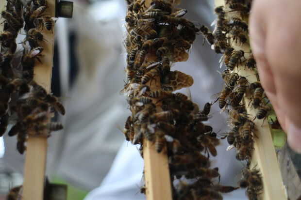 Si coloca un marco entero con una celda de Reina unida, asegúrese de dar que enmarcan un buen batido para quitar todos los trabajadores de vuelos. Esto evita que las abejas de la forma de dos colmenas diferentes luchando entre sí. Las abejas que permanecen aferradas al marco después sacúdelo será las abejas de la enfermera, y que no importa qué colmena están en lo que pueden hacer su trabajo. Suavemente Coloque eso Reina celular marco en el centro de la colmena por lo que se mantiene caliente y bien cuidados.