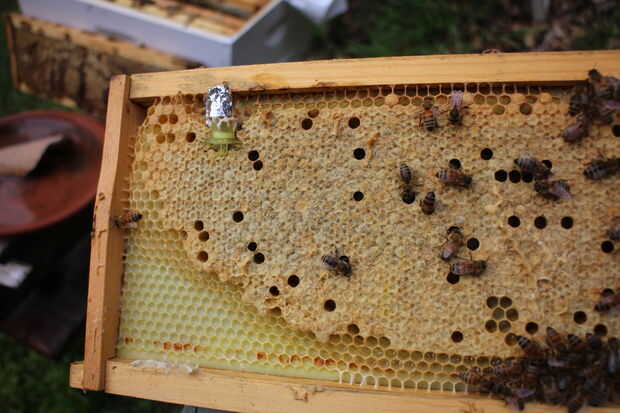 Otro método para promover un nuc es colocar una celda de la reina (o dos) en el cuadro de nuc.