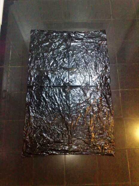 Haz una basura toda la bolsa y corte de su extremo por lo que es un cilindro abierto. Luego, corte cuidadosamente de lado para abrir el cilindro y crear una hoja plana