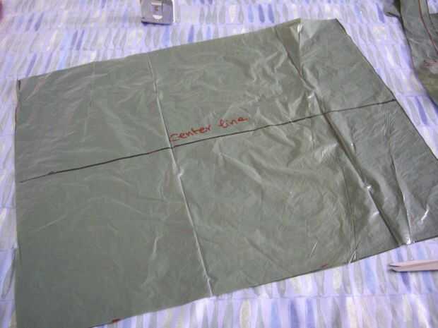 Lo mismo para el patrón de manga con la hoja más pequeña de plástico. La línea por el medio de este patrón es no una línea de corte. Es justo el marcador para el centro de la manga, usted verá por qué en un poco...