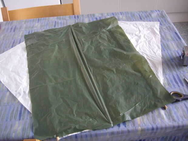 La forma más fácil que hacer el es doblar la manga por la mitad a lo largo de la línea central y coloque sobre la pegajosa cinta de doble cara, teniendo cuidado de alinear la parte superior e inferior.