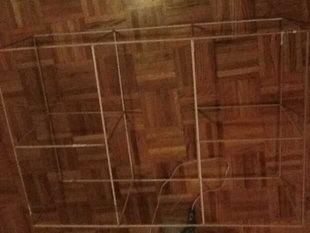 tomar una de sus piezas base y encolar 12 de sus cañas de 1 pie verticales para cada intersección. entonces pegar la otra pieza de la base de eso.