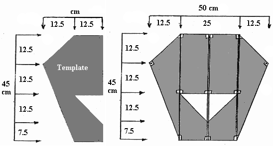 -Para crear la plantilla utilice las dimensiones indicadas (todas las dimensiones en cm)