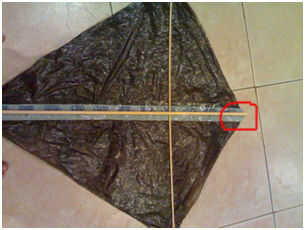 Corbata o pegamento las dos espigas juntas pero asegúrese de que coincida con las dimensiones y colocarla en la vela de la cometa. En la cometa y engancharla a la vela en los extremos, donde su marcada en la imagen. Para ello en cada esquina.
