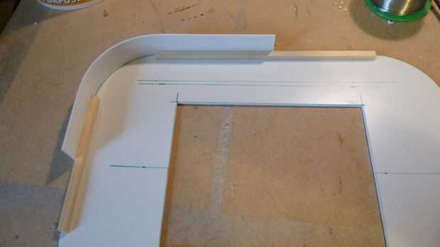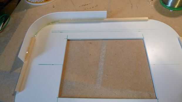 Pegamento 10mm espesor madera pino para el caso en el forro de sección, por lo que la madera es lo suficientemente gruesa como para soportar pequeños tornillos para unir las secciones más adelante. (foto 4)