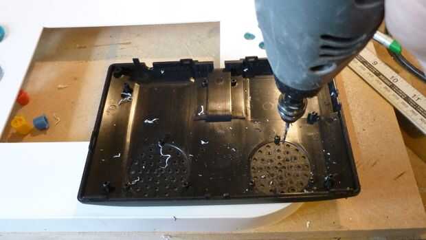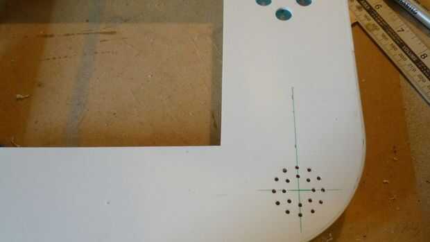 Utilice una broca pequeña y dejarlo descansar por los agujeros de la plantilla y en y, rápidamente apagar el taladro para que corte a través del plástico pero no el tiempo suficiente para dañar el resultado (Foto 2)