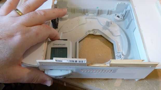 Trabajar por el posicionamiento en su caso, según pic, así que no consigue de la forma cuando la placa madre de la DreamCast está en su lugar. Básicamente, estamos utilizando el espacio el viejo transformador de tensión utilizado, que no estamos utilizando más. (pic 3, pic 4, pic 5)