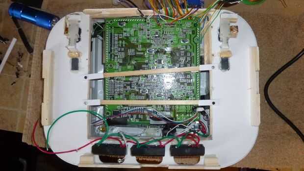 Utiliza unas tiras de pino para mantener el sistema en su lugar y jodidos que los pinares de tiras sosteniendo esa sección a la sección delantera caja de apoyo. Esto es, por supuesto, cuando se inserta el sistema en el caso, y el CD se inserta en posición, por lo que un CD puede girar libremente. (pic 2, pic 3)