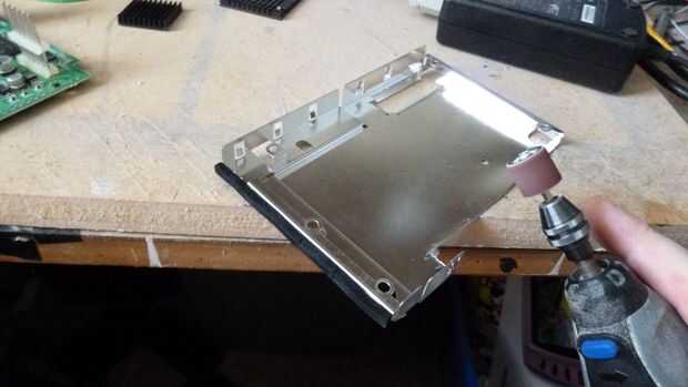 Tomar la unidad y usando un cortador circular su Dremel (Foto 1) cortar el lado del metal, quitar con cuidado. Deje los soportes de extremos según (Foto 2).