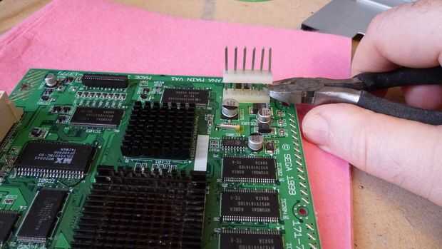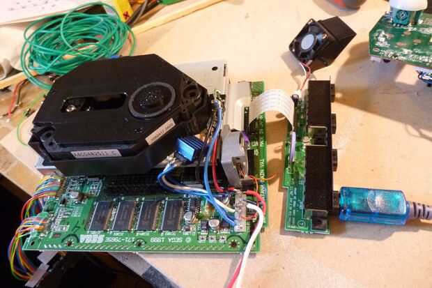 Un ventilador de repuesto cerca de los disipadores de calor del pegamento y alambre para las líneas de voltaje - utiliza un ventilador de 5v de una DreamCast muerta, tan conectado a la línea de voltaje de 5v (y por supuesto de tierra) (foto 4)