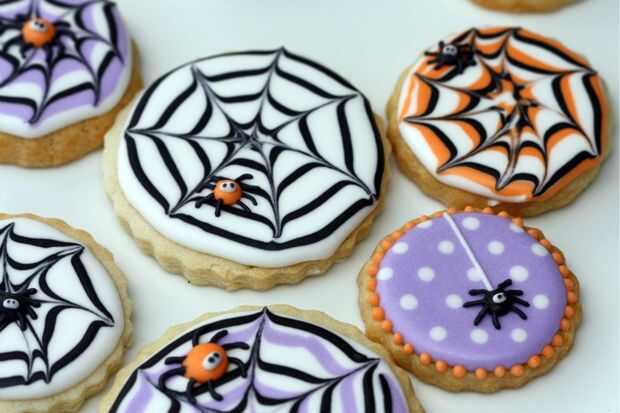 Para la araña, usando una punta de tubería #2 y icing color de su elección, la pipa de un punto de glaseado y deje que seque durante 10-15 minutos. Una vez que ha puesto la guinda usted puede tubo la araña patas y ojos, usando una punta de tubería #1. También añadir puntos alrededor de la frontera de sus cookies o cualquier otra información si lo desea.