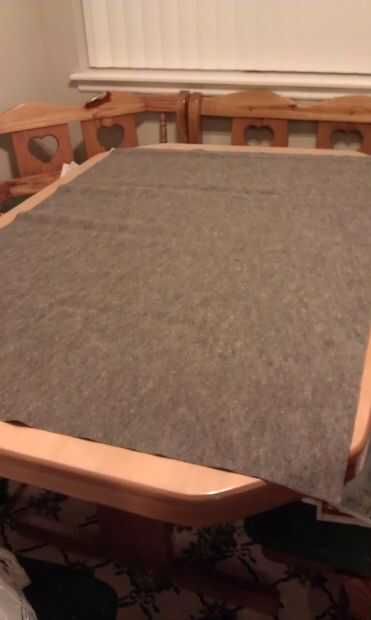 1.) pone hacia fuera la tela plana y parte posterior para arriba en una tabla o algunos otros duros, plana superficie.