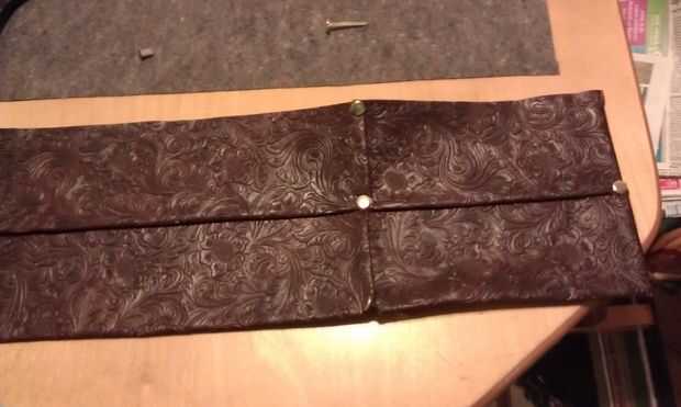 14.) corte el agujero más pequeño se puede en el centro de la zona donde se superponen las piezas largas y el hilo un sujetador a través del orificio.
